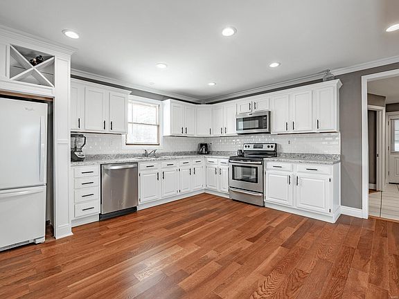 WELCOME to this gorgeous, renovated home in the heart of DeSoto. Turn the key and walk inside to the beautiful open floor plan complete with new laminate flooring, all new lighting, trim, and crown molding throughout. Between the living room and kitchen is a passthrough window with a custom made, bar height countertop for eating at and entertaining. The eat-in kitchen features new custom cabinets, new backsplash, new countertops, and new appliances. The laundry/mudroom is located conveniently as you enter the side door from the driveway. Outside includes off street parking, a large fenced-in level lot, and back entryway from the alley behind the property. All this and it is located within walking distance to soccer fields, Walther Park, and DeSoto Main St shopping and entertainment. Come see this house before it is too late!