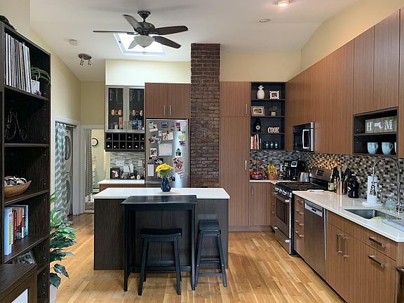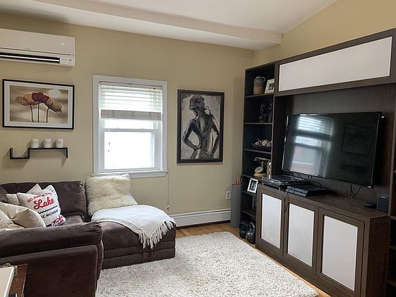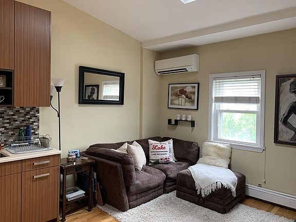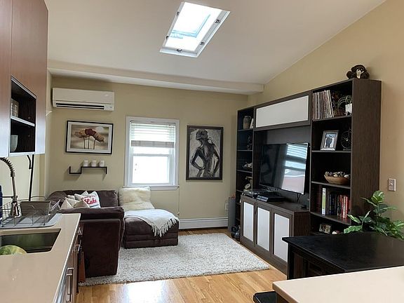 East Side penthouse unit just 2 blocks to the beach is available 8/15/20. This sunny, open-concept unit features lofted ceilings, skylights, central AC, an in-unit washer/dryer and hardwood floors. The chef's kitchen is finished with quartz countertops, ample cabinetry, stainless appliances and center island. It opens to the living room with a custom built-in entertainment center. The large master bedroom comes with an attached custom bureau and vanity/desk. The second bedroom is on the opposite side of the unit and is ideally sized for an office. Contemporary bathroom with jetted tub and linen cabinet. Gas heating. A shared patio is fenced for privacy and available for tenants' use. Additionally, there is storage in the basement. Located in City Point, just two blocks to the beach/Castle Island and one block to the 5/7/9/10/11 buses. Sorry, no pets and no smoking.