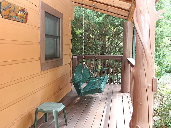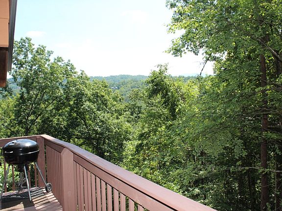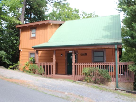 SLEEPS 5 with two king beds and daybed! Rustic log cabin nestled between Pigeon Forge and Gatlinburg in beautiful Sky Harbor. Mountain and wooded views from the wrap around deck with hot tub and porch swing. Living room with hardwood floors, rock wood burning fireplace, flat screen TV and video arcade game machine. Fully equipped kitchen with stainless appliances, breakfast bar and separate dining area. Cabin offers one private bedroom on the main floor with a king bed and full bath. Charming loft with catwalk over the living room. One area of the loft includes a full bath, whirlpool tub, king sized bed and private balcony. The second loft area features a daybed and foosball table. Other amenities include cable TV, broadband internet, full sized washer and dryer. NEW HVAC & APPLIANCES 2015! New exterior stain complete by mid August.