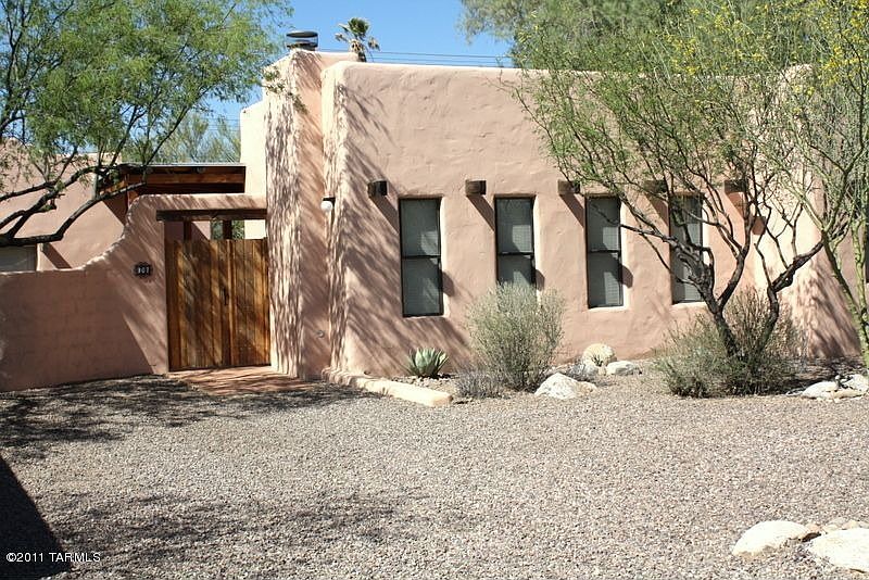 * Charming Tucson Pueblo Revival family compound style property with 2146 total square feet of living space, divided between two complete, independent, 2 bed/ 1 bath houses with a shared patio and a big back yard. It's a true private sanctuary in the middle of the city. The front house was built in 1988 and the back house in 1949 (updated in 1980). Both are in great condition with substantial updates and improvements done by the current owners. You have photo voltaic solar panels with a fully paid up lease. In the front house, newer stainless steel kitchen appliances are included, many windows have been upgraded, the climate control is newer ultra efficient mini-split units. The back house has conventional forced air heat and air conditioning. This property is a gem.