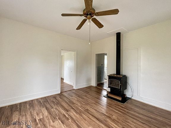 Welcome to this charming 1930's gem nestled in the heart of Dillon! This 2-bedroom, 1-bathroom house offers a cozy and inviting 838 square feet of living space. Situated on a generously-sized lot, this property boasts a spacious 900-square-foot detached garage on the back side of the property with alley access. A refreshed ambiance has been created with not only fresh exterior paint, but also new interior paint and new laminate flooring in the living room, bedrooms and kitchen areas. Both the bathroom and laundry areas have tile flooring. The house newer windows, a gas stove in the living room, some updated plumbing fixtures and a metal roof. Beyond the confines of the house, the large lot provides ample space for outdoor activities, gardening or even provides the opportunity to explore potential expansion. Whether you envision a lush garden oasis or want a little more elbow room in town, the possibilities with this property are endless. Located in the heart of Dillon, this property offers the perfect balance of tranquility and convenience. Enjoy the charm of small-town living while being within close proximity to amenities such as shops, restaurants, parks, and schools. The property is being sold in "as is" condition.