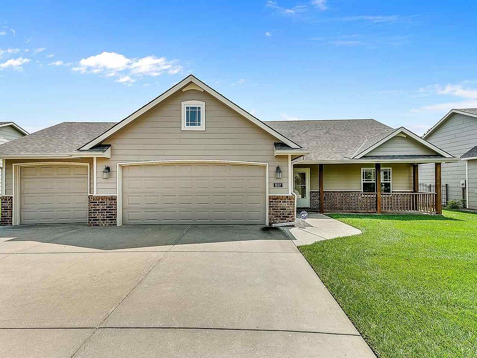 Impeccable patio home! Look no further--finished in 2005 by INK Construction. No Step entry, large master with private bath including 4' shower & huge walk-in closet. Vaulted ceilings throughout open living and dining. Fully applianced kitchen with easy care wood laminate floor. HOA maintains the yard. Nearly new plush carpet, recently repainted throughout, huge walk-in pantry is also concrete storm shelter, covered patio was enclosed to make sun room w/great view and vents were added to HVAC to keep temperate, oversized 3 car garage, backyard fenced with wrought iron, exceptionally well maintained, 2015 HWH, convenient location to shopping & golf course & hike-n-bike path and more!