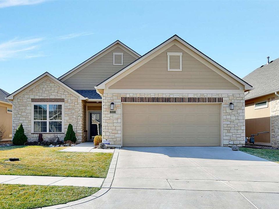Spacious zero entry patio home, located in Derby, and close to retail. This home has a private partially covered patio along with a large uncovered patio/courtyard area to enjoy outside. Two entrances to the patio, one from the kitchen/dining rooms and a second from the master bedroom attached sunroom. This completely open floor plan features a living setting with gas fireplace, dining, and kitchen area, 10' ceilings, and an abundance of efficient tall windows for natural light. The kitchen displays custom cabinetry, a large pantry, oversized center island, gas range and eating bar, as well as gorgeous granite counter tops. The Master Bath has a step in tile surround shower, beautiful cabinetry with granite double vanity, and a walk-in closet that is accessible to the laundry room. There is a bonus office/hobby room nearby! The Master Bedroom has a very large sitting room attached, a great sunroom setting for that morning coffee or evening sunsets. Enjoy the 2nd bedroom for guests and visitors. The home is located in the Courtyards at the Oaks, where maintenance is provided, including lawn service, exterior water bill for the lawn, trash service, snow removal, sprinkler system, etc. Shared amenities include a modern clubhouse with a card and fitness room, pickle ball courts, and heated salt water pool. 2021-03-09