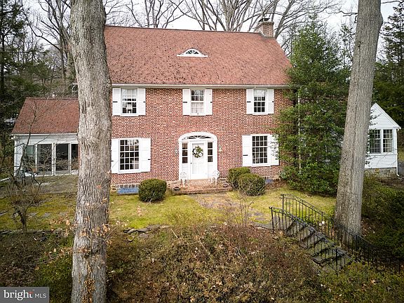 “The Oaks” is a charming and stately, center hall, brick Georgian Colonial is not only an easy walk to downtown Wayne but comes with a bonus- a Guest House! The primary and guest houses are light-filled and provide very comfortable and enjoyable living environments. Constructed in 1924 the main home has a spacious and inviting floor plan with 3,340 square feet of living space. The guest house adds 900+ square feet for 4,240 square feet of living space. MAIN HOME: Enter the front door to a formal foyer with turned staircase to the second and third floors and a hallway that leads to a powder room, pantry, and a back door with egress to a garden and the guest house. While in the front foyer, to the left, is a large living room with a beautifully mantled wood-burning fireplace and large windows with deep windowsills. Off the living room are a lovely brick, floored sunroom with built-ins, floor-to-ceiling windows on two sides, and a slider to a brick patio for relaxing and entertaining. To the right of the foyer are the formal dining room with built-in arched cabinetry with glass doors on top and solid paneled doors on the bottom for more storage. The windows are large with deep sills. Through a door at the rear of the room are a Pantry and wet bar with great built-ins for more storage and a desk workspace for bill paying and computer work. Also, there are back stairs to the second floor and a full basement with Beseler doors outside. The basement is large and runs the entire length of the original home. This is where the laundry is located. Back on the first floor, the pantry leads to an updated version of a fabulous white chef’s kitchen with brushed stainless steel, high-end appliances, a cathedral ceiling with beams, brick walls at either end, a built-in gas cooktop, two ovens, a convenient island in the middle of the room to work both counter spaces, and a custom skylight to maximize the natural light. At the end of the kitchen, part of the newer addition, is an amazing, oversized family room with cathedral ceilings with built-in bookshelves to the ceiling, a gas fireplace, and two walls of windows, one with a Palladian upper portion. There is a large closet for coats and shelves for storage and a door to the outside and garages. The second floor has a main bedroom with renovated full white bathroom with a radiant heated floor and two closets. Two more good-sized bedrooms share a hall bathroom. The third floor has two more bedrooms (or offices) with a shared bathroom. There are three heating zones; fuel is gas. GUEST HOUSE: Connecting the main house to the guest house is a charming brick walkway. The walkway cuts through a formal, laid garden that contains beds of herbs and decorative plants. It’s a cozy space that does not warrant a considerable investment of time. Also, from the driveway, there is a white picket fence with a gate to the garden and Guest House. Through the Guest House front door is a very spacious main room with a cathedral ceiling. To the right of the main room are a storage room and a coat closet. To the left is the kitchen, and across from the kitchen, is the dining room. There is inside access to an oversized two-car garage with a garden potting area that has a sink with running water. Off the main room to the right are stairs to the second floor, where there is a large bedroom with a closet and renovated full bathroom. Too, there is a large cedar closet in the upstairs hall. This is a different and spectacular one-of-a-kind property and a must-see! It won’t last long.