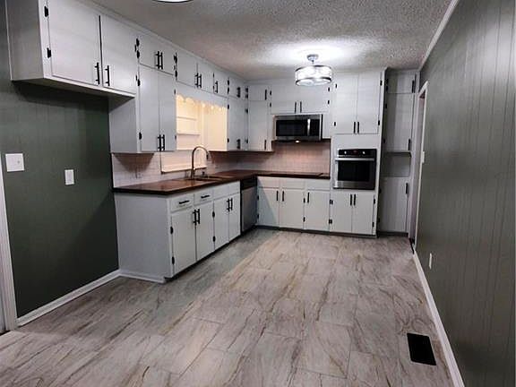 Modern hardwareRear property accessConvenient attached storage buildingNew sinkNew butcher block countertopsDual walk-in closetsLarge eat-in kitchen