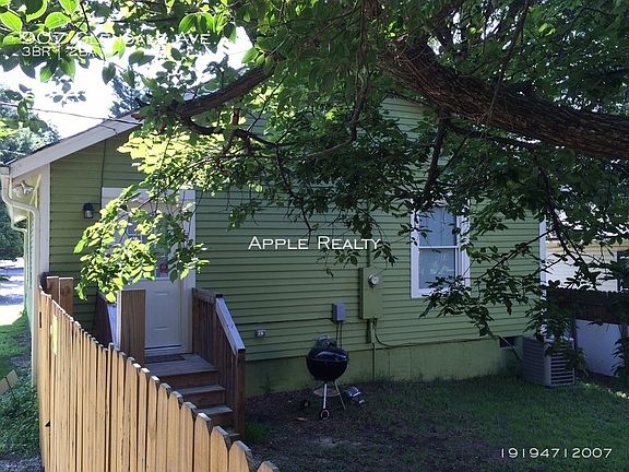 3 BR, 2 BA home in Central Park area of Downtown Durham. Open floor plan with tall ceilings and hardwood/tile floors throughout. Large closets and lots of storage. Kitchen with cherry cabinets and stainless refrigerator, stove, dishwasher, and microwave; separate dining room. Washer/dryer included. Alarm system--monitoring not included. Fenced in back yard. Pets under 35 pounds. (Interior pictures coming)