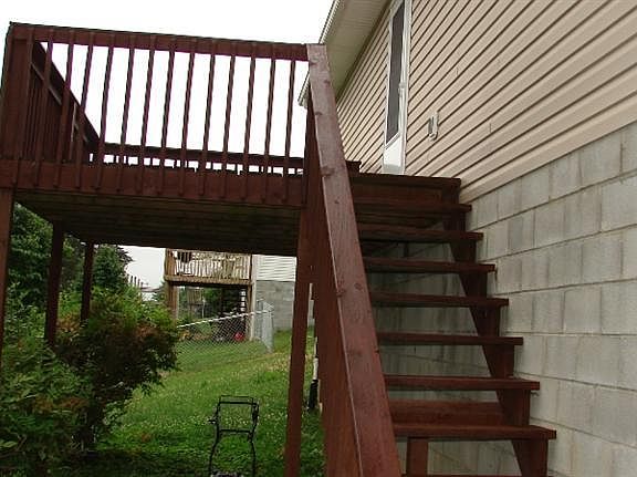 Bright and shiny! Move in ready... this home offers abundance of pretty cabinets in the kitchen Stainless steel appliances, hardwood in kitchen, living room and hall, crown molding, deck has been restained, big front porch, lots of trees, large crawl space.