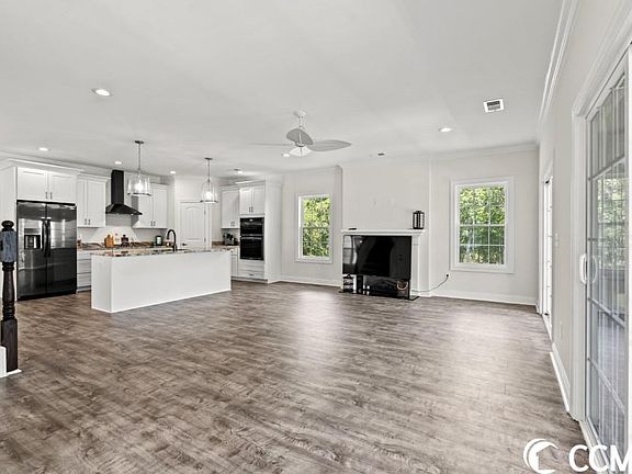 Don't miss this rare opportunity to own this like-new, built in 2023, 3 bedroom, 2.5 bathroom home in the highly sought after gated community, Pointe View Estates in North Myrtle Beach. This home features a 2 car garage on the ground level, with two levels above and a view of the inlet going all the way to the ocean from your front porch. The main living areas feature a spacious open concept with all the upgrades including LVP flooring and a fireplace as a main focal point. The kitchen is equipped with all stainless steel appliances including double ovens, work island with breakfast bar, granite countertops, and a pantry for extra storage. The master offers tray ceilings and a huge walk-in closet with a private master bath featuring a luxurious tiled walk-in shower and double sink vanities, while the remaining two bedrooms also include ceiling fans, plenty of closet space, and access to the second jack & jill bath. A bonus room at the top of the stairs makes the perfect office, playroom, additional living area, you name it! An elevator shaft is in place for easy installation. Pointe View Estates is perfectly situated in a small, private community close to all of the Grand Strand's finest dining, shopping, golf, and entertainment attractions, with just a short drive to the beach. You won't want to miss this. Schedule your showing today!