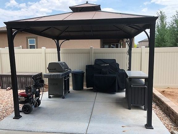Gorgeous Garfield Estates rancher with stucco and stone exterior, 3 car garage and stunning 8' entry door. Four bedrooms or 3 + office. Many upgrades including $10,000 in top of the line stainless steel appliances, full slab granite countertops, on demand hot water heater plus the $10,000 surround sound system stays! Covered rear patio plus additional patio off the master suite and the gazebo also stays!