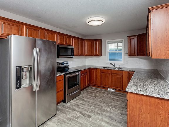 This open concept 3 BD, 2 BA ranch home boasts an attached two car garage as well as an unfinished daylight basement. The kitchen is complete with warm oak cabinets, granite counter tops, tiled backsplash, LVP flooring, and all new stainless steel appliances. All 3 bedrooms are situated on the main level along with two full baths. The primary suite features a walk in closet and private ensuite full bathroom. Built in 2019, this property is ready for its new owner.