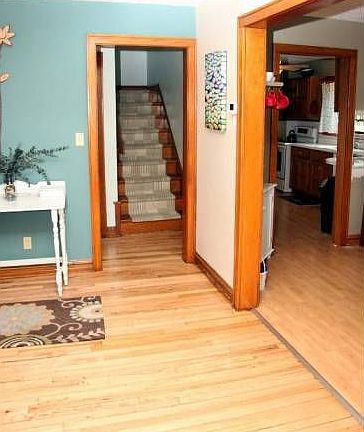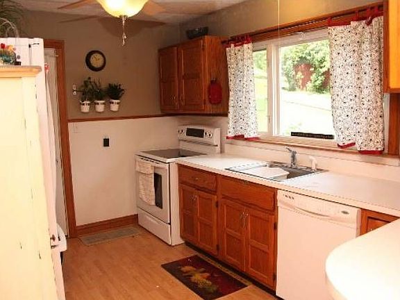 This well cared for Cape Cod has had several updates and improvements, including new heat pump and gas forced air furnance, in addition a wood furance is tied into the heating system for low heat bills. There are beautiful hardwood floors in the living room, hallways and bedrooms with laminate flooring in the kitchen and dining room. The bathrooms have also been updated and have ceramic tile floors. The modern kitchen comes with all the appliances and the full basement has the laundry area and its own outside entrance. The home sits on approximate .7 acre and has a large 864 SF garage that is large enough for 3 cars, it has gas, electric and is wired for cable and phone. There is also a new deck out back, new front porch and a new paved parking area beside the house. The home has vinyl siding and replacement windows for low maintenance. In addition you have your own grape vines, cherry, peach and apple trees. This home is in a great neighborhood and will make the perfect place to call home.