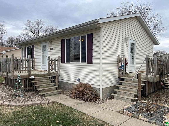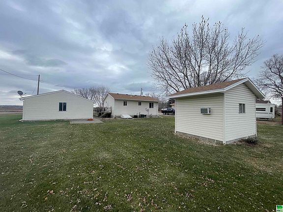 Welcome to this immaculate 2-bedroom ranch, nestled on a spacious .34-acre lot, offering the perfect blend of modern convenience and small-town charm. Located just minutes from city amenities, this home provides peaceful living with easy access to everything you need. Inside, you'll find a well-maintained home featuring an updated eat-in kitchen with a new center island, along with main floor laundry for added convenience. Recent updates include a new HVAC system, water heater, entry and screen doors, water softener, and an under-sink filter. Brand new carpet adds a fresh, cozy feel throughout. The living spaces are inviting and perfect for both relaxation and entertaining. Step outside to enjoy outdoor living at its best, with beautiful wooden decks on both the front and side of the home. The detached 2+ car garage provides ample space for vehicles and projects, while the brick patio offers a charming setting for gatherings. The basement boasts a concrete and block crawl space with a 4'6" height, providing excellent storage options. Additionally, the property includes an air-conditioned shed, ideal for all your gardening and storage needs. This home is a true gem, offering comfort, space, and a tranquil lifestyle just minutes from Sioux City.
