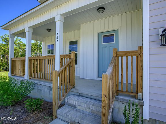 This beautiful Horizons East home sits on almost an acre lot, nestled at the end of Parrot Creek!! Step up to the inviting covered porch, where you can relax and enjoy beautiful summer evenings. Upon entry, the grand two-story foyer welcomes you and leads to the elegant formal dining room, showcasing decorative bead board wainscotting and a detailed coffered ceiling with crown moulding. Around the corner, you'll discover an enormous pantry on one side and an additional pantry on the other, guiding you to the elegant kitchen that features grey cabinetry, granite countertops, soft-close wood drawers, and stainless steel appliances. Adjacent to the kitchen is a cozy breakfast nook that flows into the large living room with a cozy electric fireplace, creating a perfect space for gatherings. Wander upstairs to find the primary bedroom offers a luxurious retreat with an ensuite bathroom featuring ceramic tile, a separate shower, a garden tub, and a spacious closet. The laundry room is conveniently located next to the generously sized bedrooms, ensuring convenience for all. Don't forget to step outside and enjoy those peaceful Carolina evenings on the back deck. This lovely home offers the opportunity to create wonderful memories.