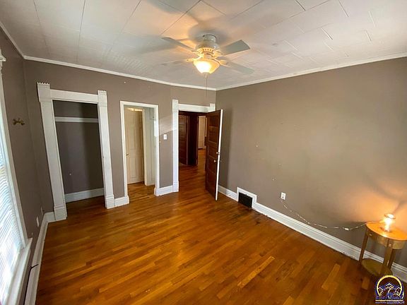 Charming 2 story home that boasts a full bathroom for each of the 4 bedrooms with 3 being on suite. 2035 square feet of living space here with a full unfinished basement, central heat and newer central air conditioning, new roof and gutters. Check out the wood work and ornate finishes throughout, not to mention the updated kitchen with ALL the appliances staying. The main floor entails a front foyer, living room, formal dining room (with 2nd entrance), primary bed and bathroom, laundry room, and kitchen. Upstairs one will find the other 3 bedrooms and 3 bathrooms. 2 of the bathrooms are quite large with jacuzzi style tubs and the other bath boasts an antique claw foot soaking tub. Outside a person can enjoy the mature trees surrounding the property, the covered front porch or the privacy fenced back yard. Alley access with off-street parking for 5 vehicles, a single detached garage that was recently rewired, and a parking pad out front round out some of the other exterior amenities. This home is definitely within an easy walk to downtown Emporia or the campus at Emporia State University. This home was formerly operated as a bed and breakfast in the past and has a ton of possibilities to be converted back or turned into a short term vacation rental. Come tour this charming property today!