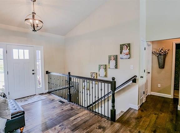 Beautiful 2 yr old roomy ranch loaded w/upgrades! Interior features too many to list! Gas floor to ceiling fireplace, w/i pantry w/barn door, engineered hardwoods, tile bathrooms, free standing tub and sep. shower in master, SS appliances, subway tile backsplash, upgraded lighting throughout the home. Granite counters, 42" cabs, iron spindles, 2 panel doors and custom trim throughout, 3 panel slider. 4th super-sized bedroom finished in the lower level with egress window and w/i closet. Laundry room, bay windows, coffered ceilings, vaults. Everywhere you look you will see upgraded features. Exterior features include: brick/stone, enclosed s/f, 3 car garage w/2 ft bump out, 4' vinyl privacy fence, large patio, covered front porch, landscaping. The backyard is level, fenced, and backs to trees. Comes with 1 year Choice Home Warranty plus almost 8 years remaining on the builders structural warranty, and basement waterproofing warranty issued when built. Survey provided to new owners.