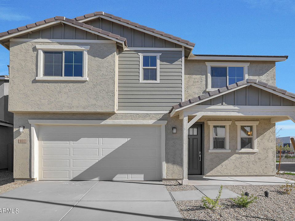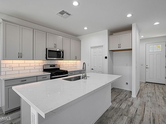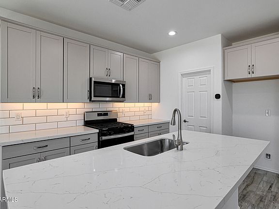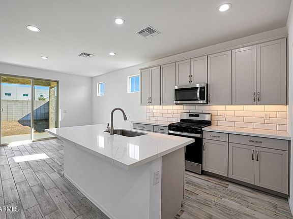 New home ready this spring! Two-story Whatley floorplan with Spanish style exterior. The spacious kitchen features stainless steel appliances with gas range and a large island, with ample sitting space, overlooking the dining and sitting areas. The stylish kitchen cabinetry in a creamy taupe tone is complemented by upgraded quartz countertops. The second floor features a loft, the owner's suite and two additional bedrooms. Upgraded flooring includes wood-color tile plank throughout the first floor, all bathrooms, and laundry room, plus plush, upgraded carpet upstairs. The owner's suite has a walk-in closet and private bathroom with a spacious vanity featuring double sinks, cabinet drawers and step-in shower. Great home with spacious sitting and socializing areas. Home warranty included.