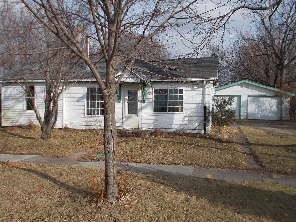Two-bedroom home on 1/2 an acre in town. Large eat-in kitchen. West facing living room with spectacular views of sunsets. Full bath with cast iron, enameled tub/shower combination. Laundry room just off kitchen. The two bedrooms are separated by French doors. One of the bedrooms could be a dining room or an office. Edible landscaping, mature trees, and a 2-car detached garage with 2 overhead doors complete this property.