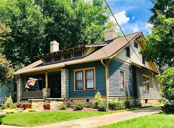 Fabulous circa 1917 Craftsman Bungalow is move in ready! Solid Granite foundation and porch pillars with a rich earth tone paint scheme exemplify the Arts & Crafts Movement. Large private front porch leads into the living room with built in bookcases and fireplace. Leaded glass sidelights flow into the elegant dining room with the signature craftsman style high windows meant for your buffet/server & plate rail for your collectibles. Small butlers nook and updated kitchen with tile backsplash and granite tops featuring a small food pantry. Owners Suite has many built in closet and drawers and updated bath. Enclosed back porch is set up as laundry room and back bar area. Private picturesque back yard with newly installed patio featuring stamped concrete for enjoying year round. Home has a detached 1 car garage, Shared Driveway. New roof in 2015, New exterior paint 2015 Located in North Main Historic District and exterior over site applies and grant money is available.