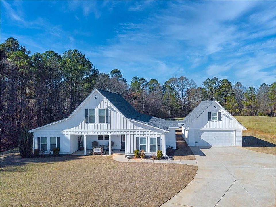 Approximately 2+/- acres and custom-built Farmhouse style home brings comfort and convenience to the homeowner. You’ll fall in love with the open concept – perfect for daily living and entertainment. The great room has a high ceiling and a style that live with its meaning – daily enjoyment or frequent entertainment. Oh, la, la, this kitchen has a nice breakfast bar, two pantries with barn doors, hard surface countertop, computer nook area, number of cabinets and shelves, and electric appliances. Dining area makes a mealtime a happy event every day. Split-bedroom style for privacy and conveniency: Spacious owner suite with two walk-in closets, two vanity sinks, separate/spacious tiled shower, and modern style tub. The two spacious and cheery bedrooms include a closet with ample amount of space and a shared bathroom, with private access, that include double vanity sink to speed everyone along in the morning and combined shower and tub for performance and convenience. A perfect place for a playroom or a guest room, please meet the spacious 4th bedroom with step-in style closet. The laundry room makes the washy-washy a little more fun. No need to wait, here’s the half bathroom. Loft, oh sweet loft – a great place for home office, hobby room, exercise room, or that Zen room that you always wanted! Who doesn’t like a covered entry porch, no drenching in the rain while singing and ringing the doorbell. Wait a minute, I haven’t told you about the large covered back porch – game on, party on, watch the young ones or the young at heart playing in the back yard, or whatever your desire to make this covered back porch your own haven.