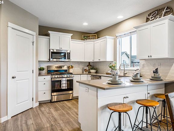 This spacious new construction home offers four bedrooms, two and a half baths, and a den, providing ample space for comfortable living. With a move-in date set for December or January, buyers can still select their preferred colors and finishes. The main floor features an open-concept kitchen equipped with granite countertops and a gas range, ideal for cooking and entertaining. Luxury vinyl plank (LVP) flooring throughout the formal areas adds durability and ease of maintenance. The great room seamlessly connects to the dining area, creating a welcoming atmosphere. A conveniently located powder room and a den provide additional functionality, while the garage includes a 4-foot extension for extra storage or workspace. A covered patio measuring 12x12 offers outdoor living space for various activities. Upstairs, the owner's suite includes an en-suite bath with dual sinks and a large soaking tub. Three additional bedrooms provide flexibility for family, guests, or a home office. A second full bath and a laundry room are also conveniently located on this level. This home features dual-zone heating and air conditioning, allowing for personalized climate control. The energy-efficient design contributes to lower utility costs.