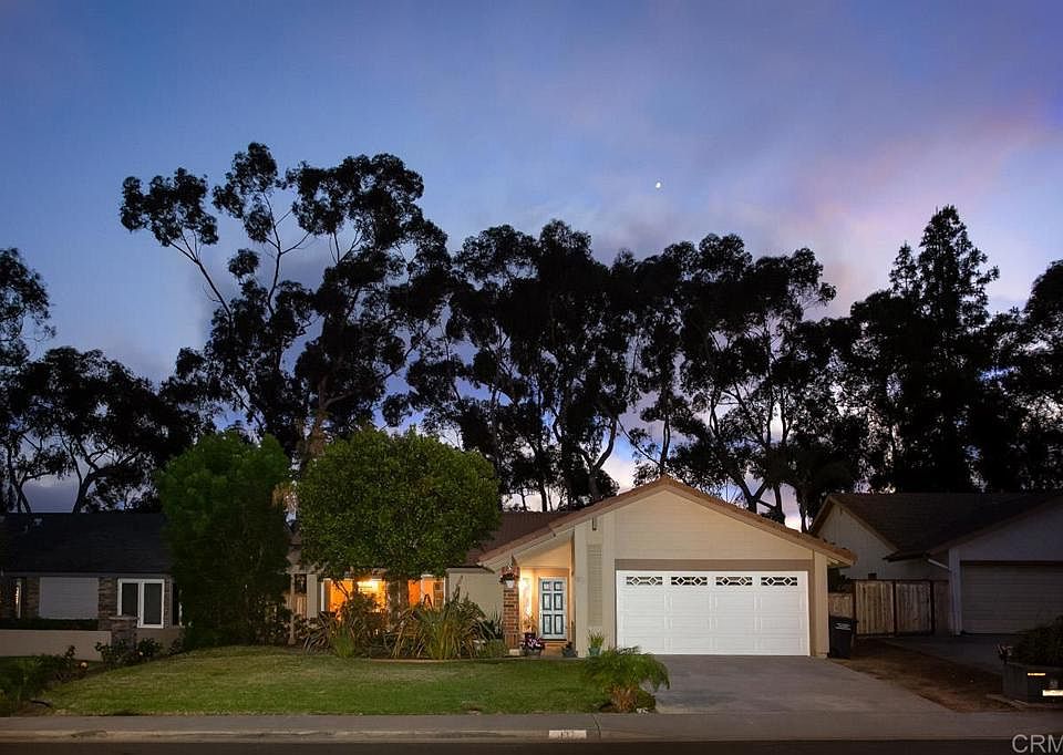 Nestled in the coveted Spinnaker Hill neighborhood of Carlsbad, this good looking single-level home offers a perfect blend of comfort and convenience. Surrounded by stately eucalyptus trees, the expansive sun-filled yard provides a serene, natural retreat, complemented by a large patio ideal for al fresco outdoor gatherings. A lush front porch welcomes you...setting the tone for the warm ambiance inside, where a fireplace graces the family room. This home features three spacious bedrooms and two well-appointed bathrooms, along with a two-car garage. Its prime location on a cul-de-sac ensures easy access to the freeway, beach, lagoon, and scenic trails, making it an ideal choice for those seeking both tranquility and accessibility. No HOA or Mello Roos!!
