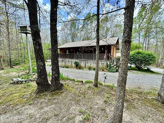 Rustic Dovetail Cabin on 5.56 Acres! This completely private homestead offers timeless charm with hardwood floors and wood finishes throughout. Stay cozy by the propane fireplace and enjoy a spacious full walkout basement. The home features a tankless water heater, a walk-in pantry, well water, and a 3-year-old HVAC for efficiency. Outside, relax the large front and back porches, grow in the garden spot, or pick from fruit trees. A circle drive with covered parking, a 24x40 detached garage with electric and a coded gate to enter the property complete this private retreat with minimal restrictions! *$200 annual road maintenance dues*Buyer to verify all information to make an informed purchase*
