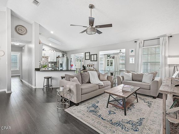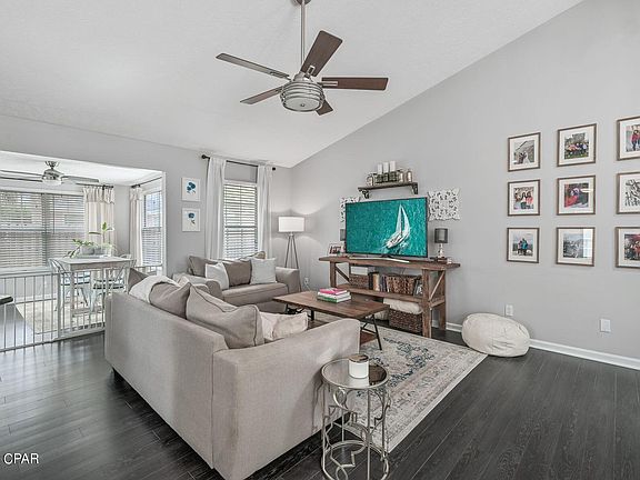 BACK ON THE MARKET AT NO FAULT TO THE SELLER** Less than four miles to Pier Park and a half-mile to the white sandy beaches of the Gulf of Mexico, this three-bedroom primary home sits in a small, well-established neighborhood with no HOA. Boasting an open floor plan perfect for entertaining, this tidy house has LVP flooring throughout (tile in the bathrooms), updated fixtures, fresh interior and exterior paint, a two-car garage and a fenced backyard. Designed in a split bedroom floor plan, the primary suite has an attached bath and walk-in closet. Large great and family rooms offer spacious accommodations for all near a kitchen with European-style soft-close cabinets, tiled backsplash, rolled-edge granite countertops and stainless steel appliances. The home has recently been updated with new lighting, ceiling fans and window treatments, and both the roof and HVAC units have been replaced (2016 and 2017, respectively). All baths have modern granite vanities. A large laundry room can handle family clothing and beach gear while an extra sunroom is a perfect spot for unwinding with a book. North Beach Estates is conveniently located near the beach, shopping and schools.