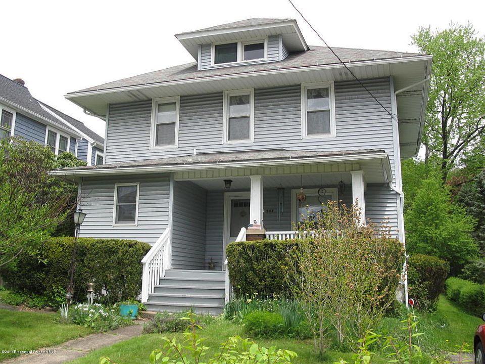 This four square home has great bones! Great neighborhood! 2 driveways, 2 car detached garage, large lot. Needs some TLC and updating, hardwood under carpeting as per seller. HUGE living room, 2 full baths, cedar closet, walk up floored attic! There are so many possibilities for the lovely home. Seller in process of moving possessions, so please don't mind the clutter. Low Taxes!
