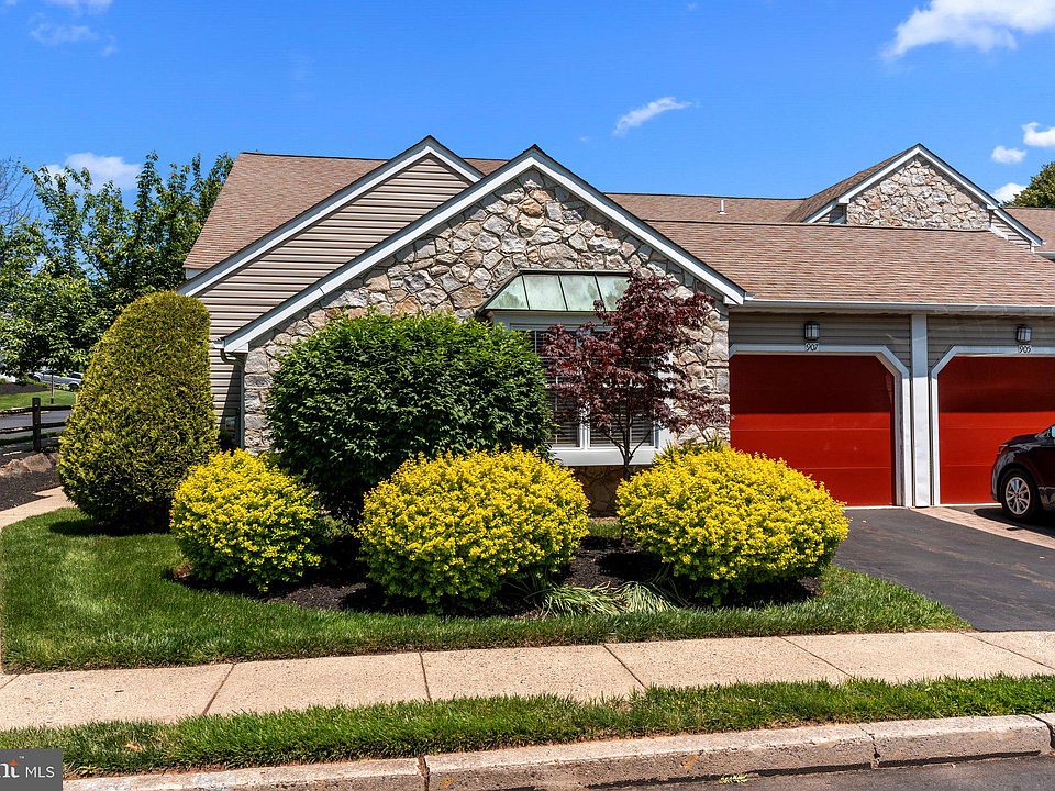 Welcome to this bright and beautifully maintained townhome featuring 2 large bedrooms and 2.5 bathrooms. The first floor offers a welcoming foyer, a spacious living room with vaulted ceilings, dining room and a modern kitchen with granite countertops and stainless steel appliances. There is also a convenient powder room on this level. The large rarely-find first-floor Master bedroom includes a walk-in closet and an en-suite bathroom with double vanity. From the cozy breakfast area, you’ll find access to the attached garage and a private backyard with a deck—perfect for relaxing or entertaining. Upstairs features second bedroom, a large full bathroom, and plenty of closet space for storage. Additional highlights include an electric fireplace, beautiful flooring throughout, large windows that let in plenty of natural light, and neutral colors that complement any decor. Outside, enjoy a private deck ideal for barbecues and gatherings. Located on a quiet street in the highly desirable Village Shires community. The HOA fee includes access to three swimming pools, tennis courts, playgrounds, lawn care, and snow removal. Conveniently situated in the award-winning Council Rock School District, close to the Newtown Bypass, shopping malls, restaurants, and easy access to I-95.
