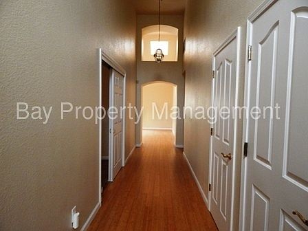 Charming 4 bedroom 2 bath home in Creekbridge. This single story home has approx 1680 sf. Living room with vaulted ceilings and a fireplace. Hardwood floors throughout most of the home, carpet in bedrooms. Kitchen with electric stove, dishwasher and refrigerator. Interior laundry room with washer and dryer provided. Master bedroom with vaulted ceilings and walk in closet. Lovely back yard with fruit trees, very low maintenance. Tenant takes care of landscaping. Double garage with opener. No pets, no smoking. Tenant pays PG&E, water, and garbage. Renters insurance required prior to move-in. Available on a 1 year lease. Owner does not participate in the Sec 8 program. Bay Property Management Inc. is an equal opportunity provider of housing. We do not discriminate on the basis of race, color, religion, national origin, ancestry, sex/gender, sexual orientation, age, disability, familial status, or any other basis protected by federal, state, or local law. Bay Property Management abides by HUD, DFEH and any local occupancy regulations .Bay Property Management generally follows the HUD occupancy standard of two (2) persons per bedroom plus 1, relative to all tenant application decisions. Rental Terms: Rent: $2,700, Application Fee: $40, Security Deposit: $3,000, Available 10/1/18 Pet Policy: Cats not allowed, Dogs not allowed Contact us to schedule a showing.