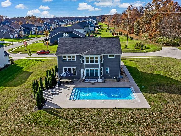 Amazing Home! You will love this beautiful home with a heated pool. Boasting over 4000 sq ft of living space, a full basement (9ft high, rough in for bathroom and egress window). A very hard to find a large lot with privacy to enjoy the 40 X 20 custom pool with automatic cover and MANY upgrades. The lot is unique, offering 1.2 acres surrounded by trees Sellers have added many high-end upgrades to customize this wonderful home.