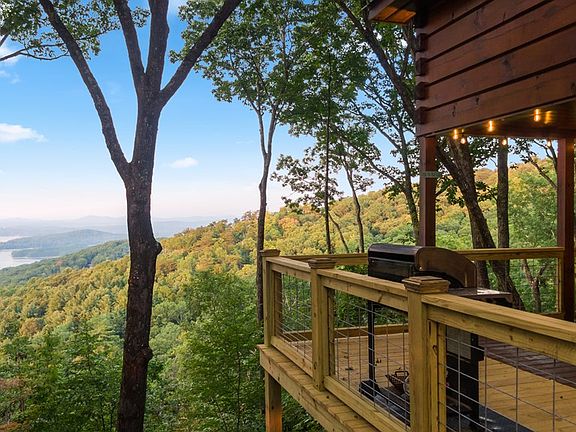 Welcome to your dream retreat in the heart of the Aska Adventure Area! Nestled on a .94-acre lot, this charming 2-bedroom, 2-bathroom cabin offers unparalleled year-round mountain and lake views, seamlessly blending rustic charm with modern comforts. As you enter the main level, you'll be greeted by a bright and open living space featuring a large living room, dining area, and kitchen. Expansive fixed glass windows flood the interior with natural light and picturesque mountain vistas. The living room is perfect for relaxation, with its high beamed ceilings and a stunning floor-to-ceiling stacked stone fireplace. Step outside to the large covered porch, where you can enjoy dining al fresco with stunning views of Lake Blue Ridge or unwind in the hot tub as you soak in the tranquility of the surroundings. The main level also hosts a cozy guest room and a full bathroom for convenience. Venture upstairs, and you'll find a catwalk overlooking the living room, leading to an oversized loft area. This versatile space includes a pool table and two day beds, ideal for additional sleeping options. The primary suite on this level is a true sanctuary, complete with an ensuite bathroom featuring a soaking tub. Currently a successful vacation rental, this property offers a great investment opportunity or a perfect full-time home. Located just 10 minutes from Downtown Blue Ridge, you'll have easy access to vibrant restaurants, shops, and a plethora of outdoor activities such as hiking and biking. This cabin is more than just a home; it's a lifestyle. Experience the perfect blend of adventure and relaxation in your own private escape. Don't miss this opportunity to own a piece of paradise with unparalleled views and modern luxuries!
