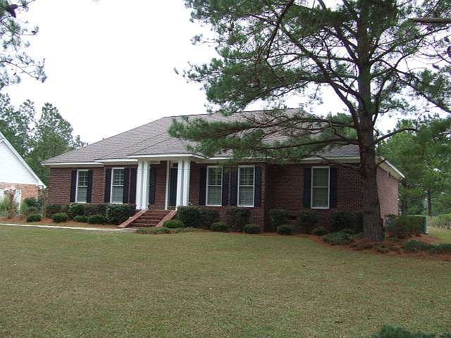 Step out the back door to play golf! Open the front door and step in to find large den to include fireplace, nice sized dining room, and kitchen to come furnished with all appliances! 2200 sqft in this split floor plan which includes 4 bedrooms. Master bedroom with its own private bath has double vanities and large walk in closet. Plantation shutters through out the home....beautiful hardwood floors in den and dining room. .75 acre lot covered with trees and beautiful landscaping. Step out the back door to deck which is perfect for grilling.