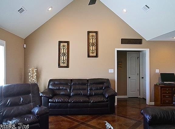 Large new home in the new Donlee Ridge subdivision. All brick and stone exterior with LED lights, stained concrete floors and carpet in the bedrooms, vaulted living room and bedrooms, open kitchen-living with no slam cabinets throughout. Split floor plan with all walk-in closets. Master bathroom has 6 ft long jetted tub and walk-in shower and double vanity.
