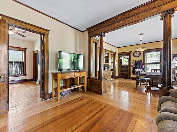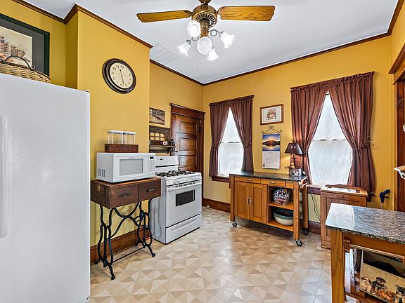 Check out this charming 4 bedroom and 1.5 bathroom brownstone home located in Kankakee! Entering the home, you are greeted with beautiful original woodwork including; flooring, gorgeous column feature, built-in China cabinet, rich doors/frames, and more all throughout the living room, dining room and home. This connects into the kitchen that features an old fashioned butler's pantry that has plenty cabinets for storage! Main floor includes first floor bedroom, currently being used as an office, and a half bathroom. Heading upstairs are the additional 3 bedrooms and a full bathroom. The third floor has an extra bonus room, which could be used as a 5th bedroom, with plenty of space to spread out, or make this space your own! Downstairs is the unfinished basement that houses the laundry and has plenty of space for additional storage needs. Heading outside is a cozy patio that overlooks the corner lot and well-manicured fenced-in back yard. There are 2 detached car garages for plenty of parking! If you like old charm, this home is for you! New HVAC in 2021. Call today for your private showing.