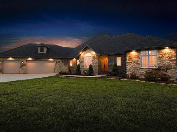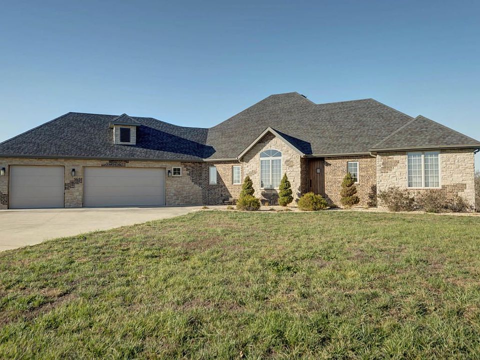 Beautiful all brick and stone home located atop 5 acres in Nixa! This walk-out basement has so much to offer. It features: open floor plan with split 4 bedrooms plus office, 3.5 baths & 3 car garage. Great kitchen with commercial grade gourmet appliances, gas cooktop, double ovens and double built-in refrigerator, granite counter tops & custom cabinets. Master ensuite w/double vanities, jetted tub, walk-in closet & large walk-in shower. Solid hickory wood floors and beautiful cast stone gas fireplace in the living room. Enjoy amazing views from back windows & covered deck. The home has John Deere room, lots of storage and central vac. Low utility bills thanks to the Geothermal HVAC system. Located on quiet dead-end street.