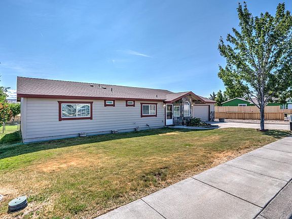 This is the one you've been waiting for! This one-owner home has three bedroom, 2 bath, 1,412 sf home situated on a .20 acre corner lot in Sunrise Estates in Madras. Spacious great room style living, light and bright w/vaulted ceiling. Large bay window in dining room/area. Very functional kitchen has granite tiled countertop w/breakfast seating. Primary bedroom at front of the home has an ADA accessible shower. Freshly painted interior throughout home. Garage is over-sized with plenty of cabinetry for storing all your goods. Front and back yards are nicely landscaped. Backyard is fenced with garden shed, raised beds for growing your summer vegetables and mature, producing apple, plum and cherry trees. There's plenty of room for RV or boat parking. Approx. 18'' wide 32'' from gate towards street and 30 AMP RV hookup. This home is vacant and ready for a quick close.