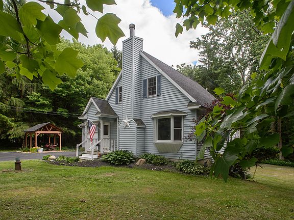 You'll love this charming 3 bedroom, 2 full-bath Cape Code home built in 1993 on almost an acre of park-like property. Highlights include an updated kitchen with center island, wide plank cherry laminate floors, and central air. In addition, the home has a new roof (2013) and hot water tank. The living room includes new carpet, a bay window, and a gas fireplace with brick surround perfect for those cozy family nights. The large walkout basement could easily be finished for an additional family room or recreation area. Or keep it for storage and laundry. The basement door opens to the large, captivating wooded backyard with a fire pit and small children's playground. There is a tile entry foyer with lots of closet space, an attached 2-car garage, and a custom built-in-desk office area, and covered outdoor patio. Drift off to sleep or relax in the covered outdoor patio to the tranquil sounds of nature on this spacious wooded lot. The property attracts a large number of colorful birds, and is situated in a friendly neighborhood with an award-winning school system on the outskirts of the Town of East Aurora. Easy access to the 400/219. Will work with seller's agents!