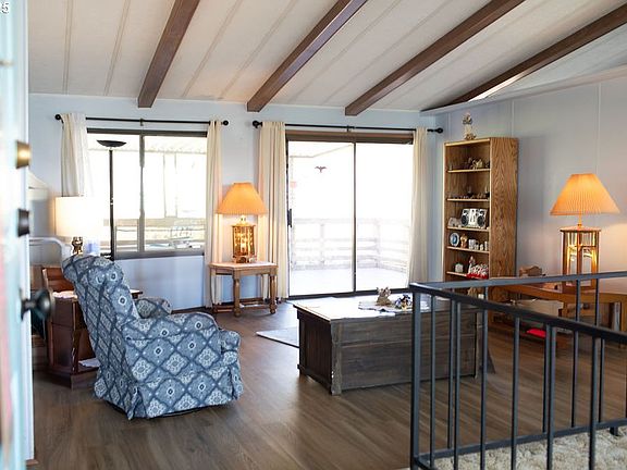**Charming 3-Bedroom, 2-Bath Home with Stunning Views & Updates Galore!**Nestled in a peaceful cul-de-sac within a well-maintained park, this inviting 3-bedroom, 2-bath manufactured home is full of surprises! With a freshly updated kitchen, brand-new plumbing under the house, and gorgeous new vinyl plank flooring, this home is move-in ready and packed with modern amenities.Step inside and enjoy the warmth of exposed wood beams and a cozy, open living space. The master suite features a spacious walk-in closet, while a built-in desk adds a functional touch to the living area. Whether you're enjoying a cup of coffee on the large back deck, taking in the breathtaking views of the sprawling field and woods, or relaxing on the front deck with city views in the distance, there's no shortage of places to unwind.This home offers the perfect blend of comfort, style, and tranquility. Don’t miss your chance to own this gem in a quiet, friendly 55+ community!
