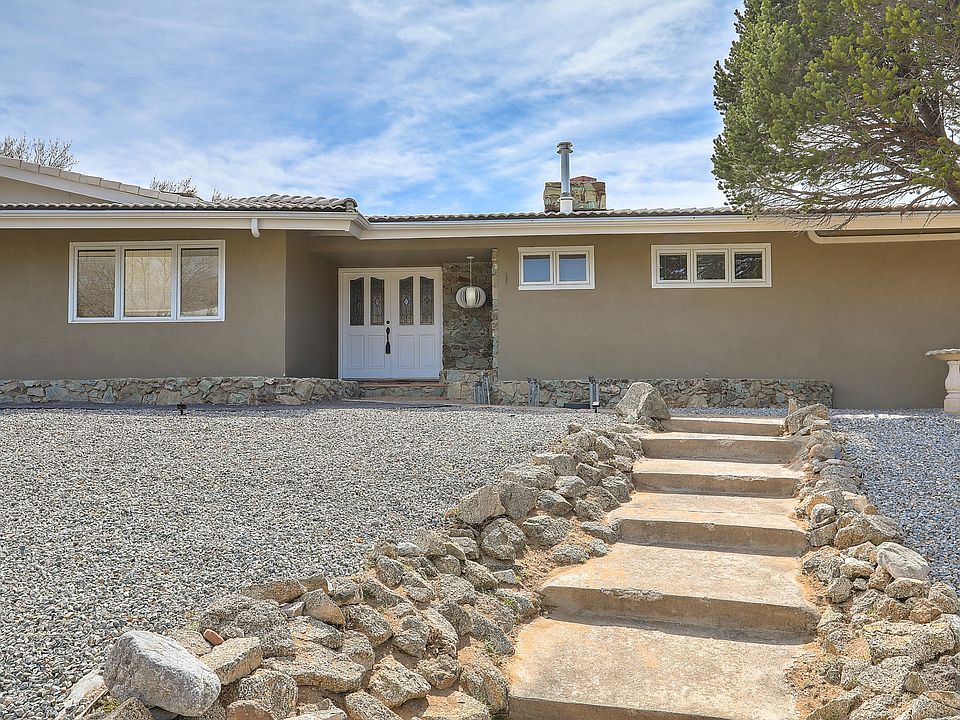 Indulge in some timeless mid-century modern design, beautifully revitalized in this 4-bedroom gem. This lovely remodel includes new kitchen, baths, flooring, HVAC, stucco, and more. A functional floorplan designed for modern living, this home exudes both style and substance. Entertain with ease in the open layout, perfect for gatherings large and small. A dedicated office space as well as two additional flex rooms offer versatility to suit your lifestyle. Situated on a sprawling .76-acre lot in one of NM's premier golf course communities, this residence offers unparalleled access to leisure and recreation. Enjoy the convenience of walking to the Canyon Club and proximity to Sandia Labs and KAFB. A short distance to hiking & biking trails. Welcome home to a lifestyle of luxury and leisure