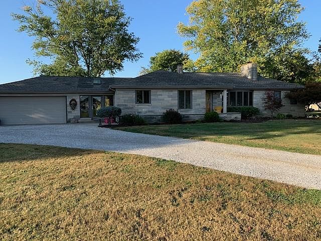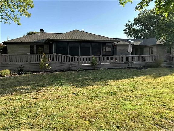 2.4 acres, edge of town , maintenance free stone home. 2 bedrooms, 3 baths, full basement and attached 2 car garage. This home features a beautiful master suite with French doors opening into 3 season room with exits on both side onto open deck. There is a large master bath and walk in closet. In addition to the attached garage there is a 24 x 40 pole barn with loft that has gas furnace and hot water. Also underground invisible dog fence. A must see exceptional property.