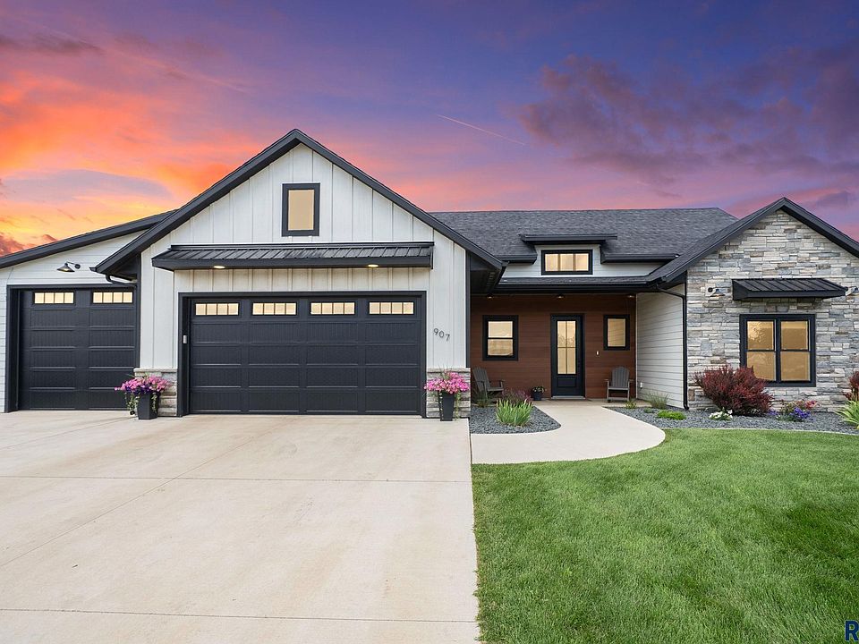 What a show stopper! This one owner home is sure to impress. Highly impressive details all throughout this spacious one level, zero-grade entry home. The open floor plan allows living, kitchen and dining to all flow nicely together. The vaulted ceiling in the living room with wood ceiling and large windows make the space come alive! Gorgeous stone-stacked gas fireplace puts it all together and is perfect for our chilly SD winters. This kitchen - wow! No detail was missed with the gorgeous painted cabinets, large pantry, neutral backsplash, gas stove and hood, plus more. The tall island has lots of seating and ties the rooms together. Primary bedroom offers tray ceiling, large private bath with 2 sinks, marble shower and a large walk in closet. There are 2 additional beds and a full bath. Laundry room is massive and offers a great drop zone. Entire home has beautiful polished concrete that offers in floor heat throughout; save on your gas bill! Outside is just as fabulous with a zero entry into the home and private, covered back patio. Massive, finished 3 stall, heated garage. Come see this fantastic Valley Springs home today!
