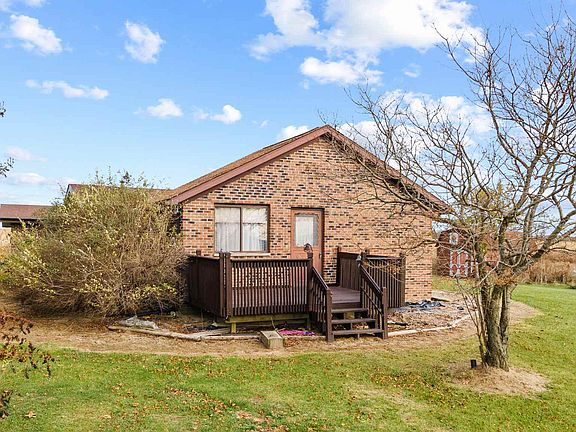 Spacious 4 BR ranch situated on nearly 3 acres! Peaceful rural setting with a convenient location within a mile of schools and town. This appealing ranch home offers 3 full baths and 4 bedrooms, one of which has a private entrance deck, private full bath with garden tub and shower, plus a walk-in closet to serve as an ideal in-law or master suite. All bedrooms and living spaces are pleasantly large. Full walkout basement has two entrances including to the kitchen and sunroom. Roof is 4 years new! Gas propane furnace plus wood burning stove. Central Air. Two owned propane tanks. Adjacent land is undeveloped adding to the quiet rural feel. This spracious home is packed with potential!