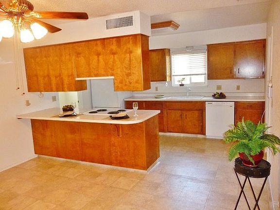 WELL MAINTAINED & MOVE-IN READY....It is an open floor plan with a large living room & fireplace. The dining room & kitchen are adjacent to the living room. There is new flooring in most of the house. The beautiful silhouette blinds add privacy & light to the room. The windows are only 4 years old with a choice of screens or winter windows. There are 1410 square feet with 3 bedrooms & 1 ¾ baths. The kitchen has a range, dishwasher & refrigerator. The guest bath has been updated with tile floor, newer vanity & sink. The master bath has a shower. The front door is newer as are the two security doors. There is an inside laundry room with room for pantry shelves. The roof is a 30-year roof & was replaced approximately 5 years ago. There is a roll-up garage door with opener. The west gate is new. The yard has a large tree for shade, grapes, crepe myrtle, pomegranate & a nectarine tree. There is a Vivint security system and Vivint leased solar.