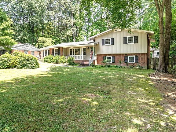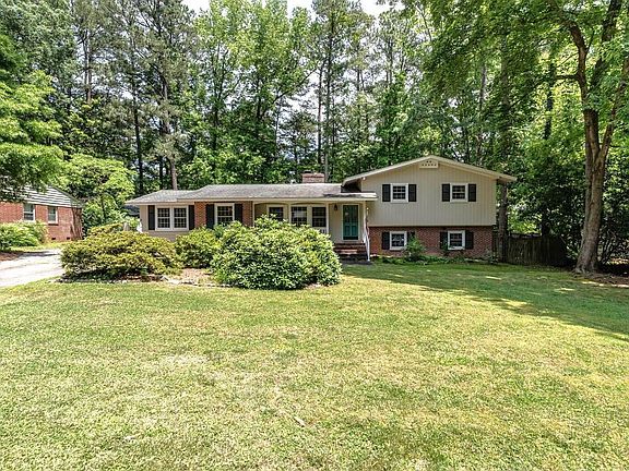 Brick home on .35 private acres in unbeatable DOWNTOWN CARY location! Ranch plan w/split walk-up to 3 Bds & 2 Full Baths. Lg walk-out basement! Formal living+dining rms, Open plan family rm w/built-ins, Kitchen w/breakfast bar, Sep. breakfast area, Office, Laundry/Mud rm+screened porch. Hardwoods throughout main & bdrm level. Beautiful brick FP w/extended hearth is perfect inspiration point for updating this classic plan! H2O heater NEW 2022+HVAC 2015. Walk to park+mins to I-40, shops, Arts Center+dining!