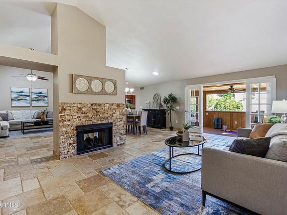 This home features an open floor plan with travertine floors throughout, updated kitchen & baths, a new roof, and a charming Arizona room, featuring well insulated knotty pine plank walls, perfect for an office, playroom or yoga studio. And let's not forget the mountain views! This home is the perfect hug after a long day or a fantastic space to entertain!