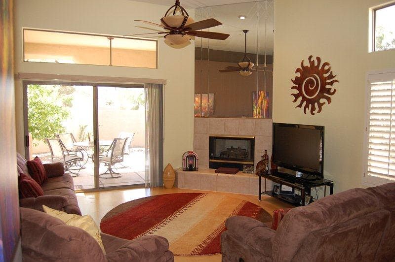 Truly unique opportunity to own a single level detached home in a beautiful North Scottsdale gated community. Enjoy the swimming pool spa and beautiful landscape without ever having to worry about the maintenance. This immaculate home offers a private courtyard entry and large rear yard. Spacious floor plan featuring newer interior and exterior paint wood floors wood shutters and water softener. Enjoy the Lemon and Grapefruit tree's from your own backyard. Close to pool and guest parking. This home is a rare find and move-in ready!