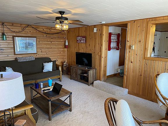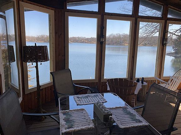Spectacular view of Papakeechie Lake form every room of this lake cottage! Enjoy the calm, quiet surroundings while you entertain family and friends. This lake home has plenty of room both upstairs and down. Two bedrooms upstairs with a possible 3rd bedroom. Knotty pine walls and ceilings for a maintenance free interior with a cottage feel. The large screened porch on the lakeside of the home is a perfect spot to eat and relax while looking at the lake. The eat in kitchen, family room and breezeway and porch will make you love this space in the lower level. Just outside the breezeway is a storage area where one would find the washer and dryer. Plenty of shelves for all your tools and lake toys. Walking down to the waters edge on the stone steps to the seawall the deck plus a brock dock pier rounds out another spot to enjoy the water a close range. There are 2 paddle boats, 2 kayaks, one canoe, one rowboat that stay with the sale of this home. The master bedroom has a deck just outside the sliding door where you can sit and read and enjoy the summer sounds and fresh air. The second bedroom upstairs has two double beds with a window to the lakeside. The living space upstairs has a fireplace, built in desk with cupboards and shelves for your computer work. The remaining section of this large room was used a the third bedroom with 2 closets, futon and couches all looking over the lake with a large picture window. Plenty of space for all!