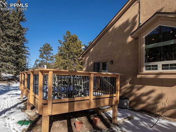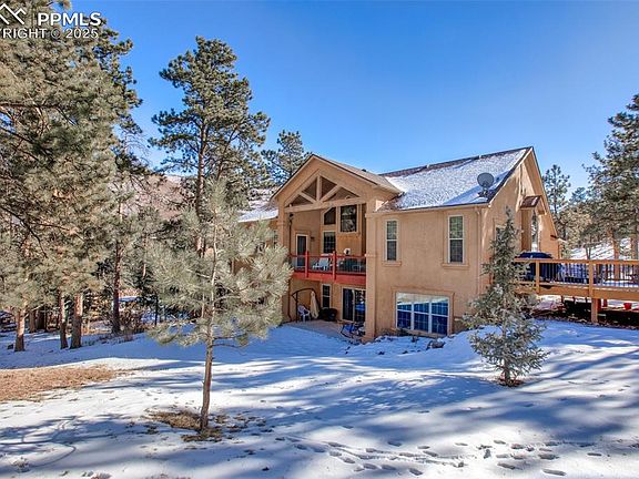 Don’t miss this incredible property in the sought-after Ute Pass area! This home offers a rare blend of quality and uniqueness that sets it apart. As soon as you step inside, you’ll notice the exceptional craftsmanship and distinctive design. The spacious living room features soaring ceilings, large windows that flood the space with natural light, and built-in ledges and shelves perfect for displaying your favorite collectibles or personal belongings. A gas fireplace adds warmth and ambiance, creating a cozy atmosphere for those chilly mountain nights. From the living room, step out onto the covered deck and take in the beauty of mountain living. The gourmet kitchen is a chef’s dream, boasting a large island, expansive windows, and ample space for preparing memorable meals. A formal dining room with hardwood floors also walks out to another deck, making it ideal for outdoor dining and entertaining. The kitchen area is completed with a spacious pantry and a convenient laundry room.The main-level master suite offers direct access to the covered deck and features a luxurious en-suite bathroom with a soaking tub, stand-alone shower, dual vanities, and a large walk-in closet. The main-level office is bathed in natural light, thanks to its bay window. It also includes built-in bookshelves and a closet, making it versatile enough to serve as a fourth bedroom if needed. The lower level of the home is designed for relaxation and entertainment. It features a large family room with a wet bar and a pool table, providing the perfect gathering spot for friends and family. Additionally, this home offers a large unfinished area, giving you the flexibility to customize the space to fit your needs. The property is equipped with two furnaces and two water heaters. Situated on a level lot, this home combines the tranquility of mountain living with the convenience of being close to Colorado Springs, Woodland Park, and other mountain communities.