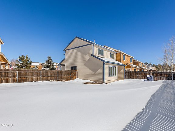 Don't miss out on this meticulously cared for Bellemont Townhome. This end unit offers the largest lot in the neighborhood with full side access, views of the San Francisco Peaks, walking distance to the National Forest, community park and a short drive to NAU/Flagstaff. The lower level has a spacious great room, breakfast bar, 1/2 bath, dinning area, and access to the attached 2 car garage. Upstairs you will find 3 spacious bedrooms, primary bedroom has a on suite, another full bath for the other 2 bedrooms to share , laundry room and ample storage. Don't miss the massive fenced backyard with a paver patio for your barbeque evenings with lots of room for kids or pets. Priced to sell!